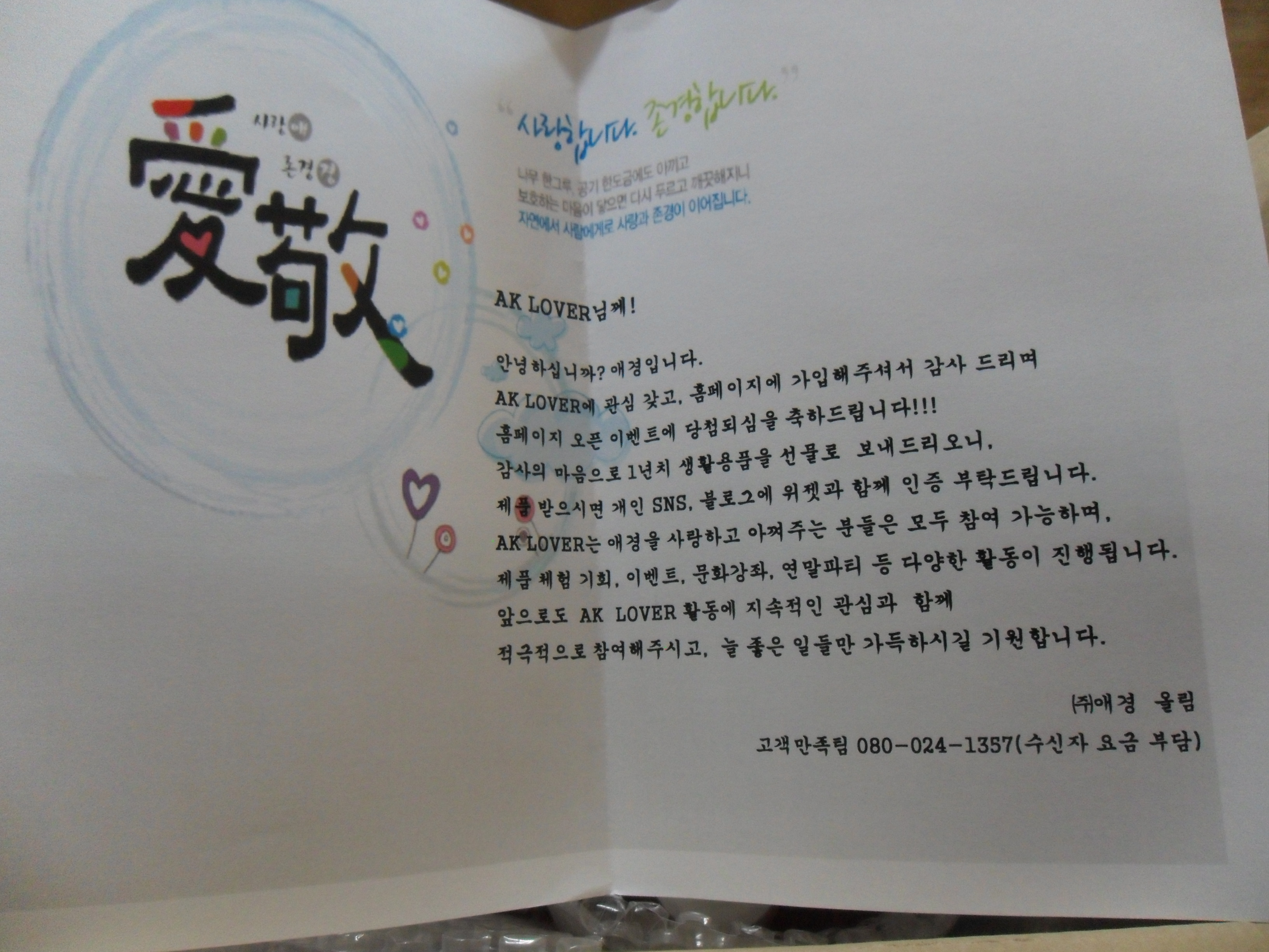 AK LOVER ȨÆäÀÌÁö ¿ÀÇ ±â³ä À̺¥Æ® ¼±¹° µµÂø^^