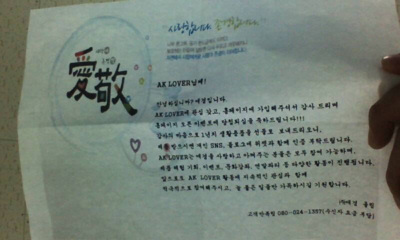 AK Lover (¾Ö°æ)ȨÆäÀÌÁö ¿ÀÇ À̺¥Æ® ´ç÷ 1³âÄ¡ ¸®Å¥¹Þ¾Ò¾î¿ä^^